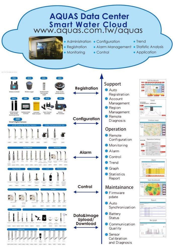 Auto Data Collection, Cloud Storage, Configuration, Operation, Monitoring, Alarming and Data Analysis. AQWEB Cloud-Based SCADA Management Software is designed to be fully compatible with a comprehensive range of AQUAS products. It consists of remote configuration, monitoring, control, Google Map fusion display, flow chart, data table, statistical analysis, transient pressure analysis, alarm summary, trend and report functions. AQWEB provide user-friendly WEB solution to make faster operation, monitoring, diagnostics and analysis across the complete water applications from anytime and anywhere.