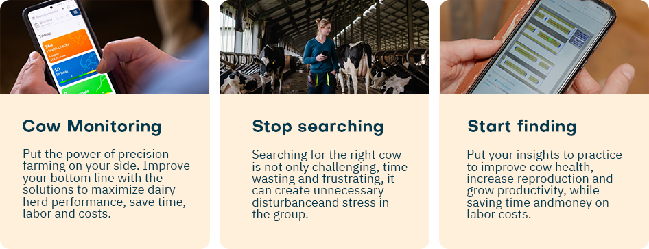 Locate cows that need checking or treatment quickly and easily with 1,5 m accuracy. Stop searching. Start finding. Nedap Cow Locating makes finding cows that need to be checked, inseminated, treated, or fetched easier and more efficient than ever before. The system automatically locates the cows you need and displays their real-time position on your barn map with just one click on a PC, tablet, or smartphone, allowing precise identification of individual or multiple cows.