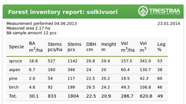 - Accurate results - less than 5% error for total basal area can be achieved. Measuring can be continued until the error is at low enough level.