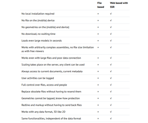 Compare file-based collaboration (e.g. via 3D PDF, JT, STEP) with web-based and server-side rendering (SSR)