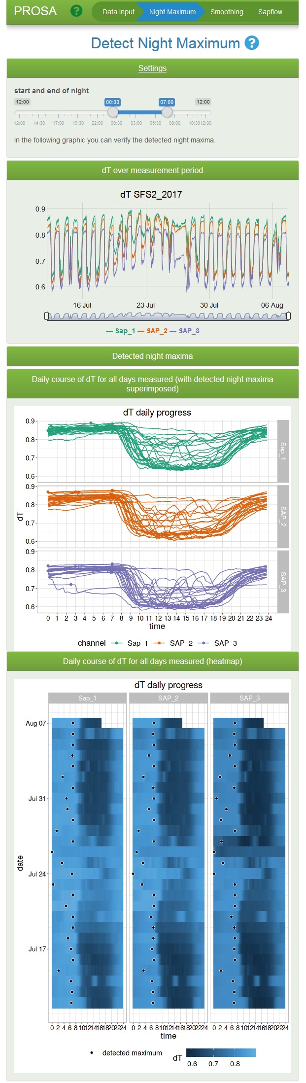 - Check Night-Maxima details and daily sensor behavior Graphics show results in different layouts