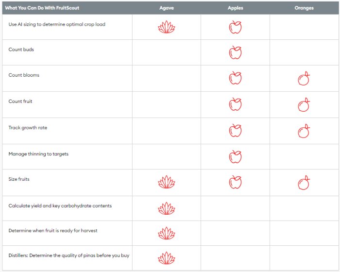 Only FruitScout’s patented AI and yield management system tells you how much to prune and thin at every stage of the growing season to stay on track, from bud to fruitlet to bin.