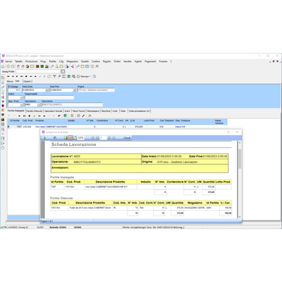 GTP.eno is GESAG`s software solution for managing wineries and cellars. Winemaking, bottling, marketing, quality, sales, and shipping: GESAG GTP.eno lets you manage all this and more. GTP.eno is the essential tool for easily managing grape and wine production processes, thanks to simple and effective tools that convey security and competitiveness to the company. GTP.eno allows you to manage the dematerialization of loading/unloading registers in the wine sector, introduced by MIPAAF with Decree 293 of 20/03/2015. GTP.eno is the perfect tool for managing and analyzing all aspects of a winery`s production process, in compliance with current regulations, simplifying the burden of national and regional regulations.