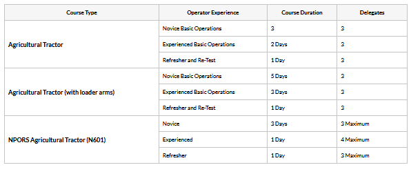 We can offer NPORS N601 Agricultural Tractor training as an alternative course. See below for more information, or contact our team today.